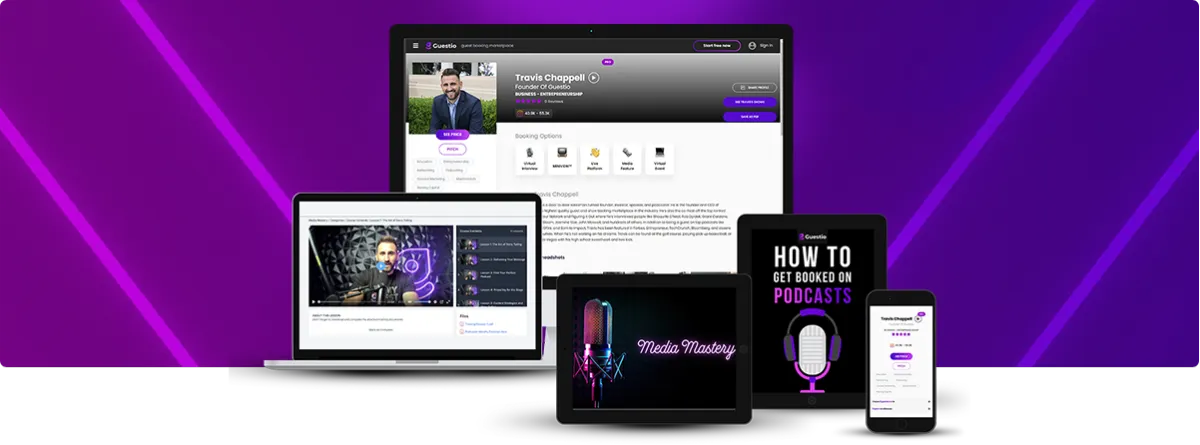 Travis Chappell, Founder and CEO of Guestio here… And Yes. You really ARE getting THE ULTIMATE PODCAST BOOKING BUNDLE that can help you quickly attract an audience of your ideal clients and turn that audience into real revenue for your business.